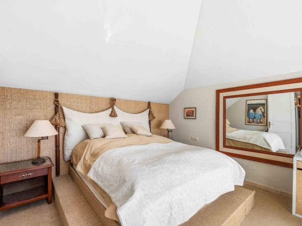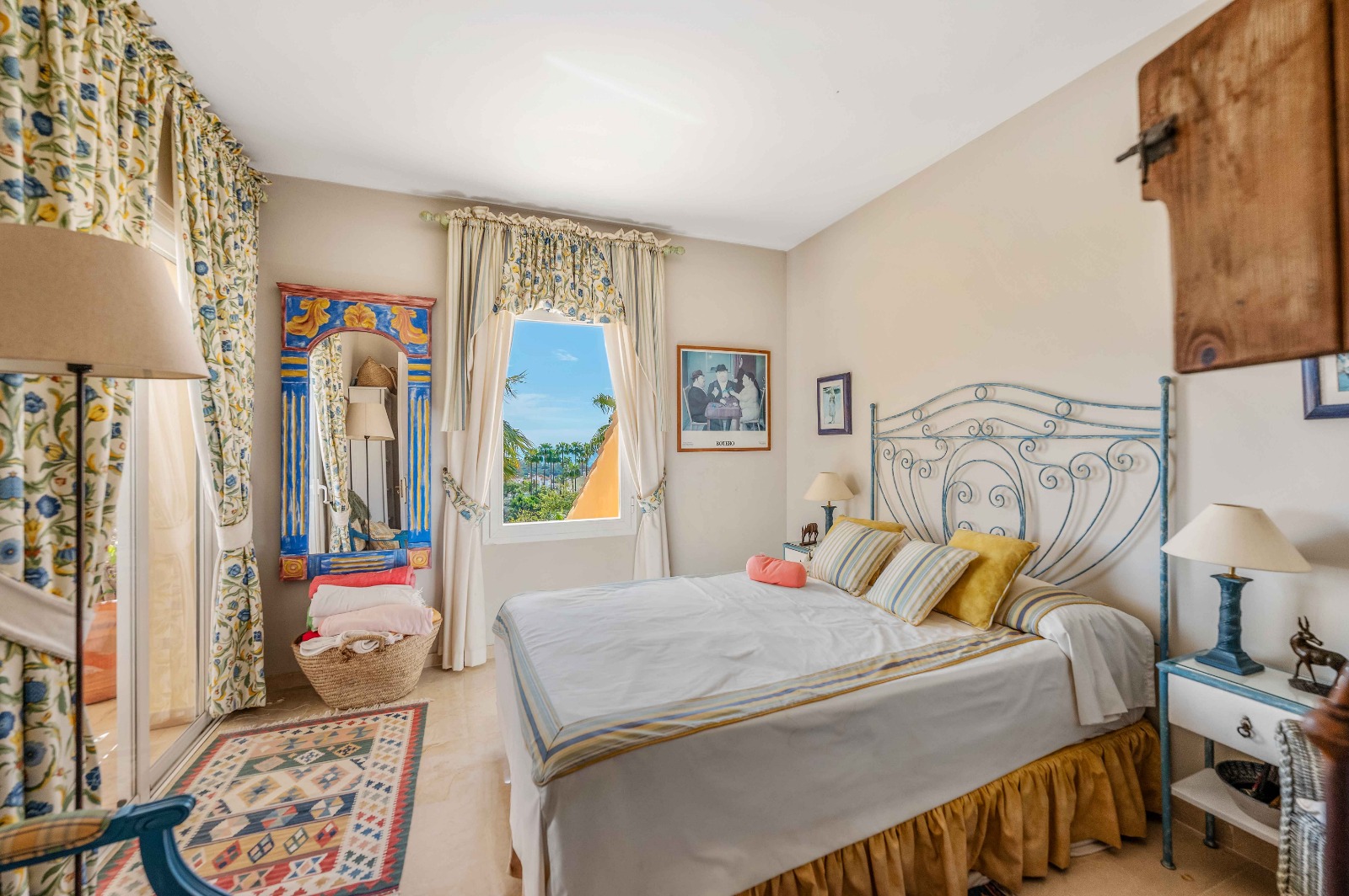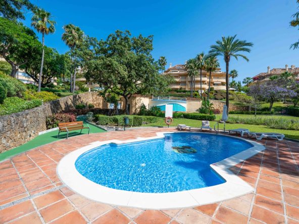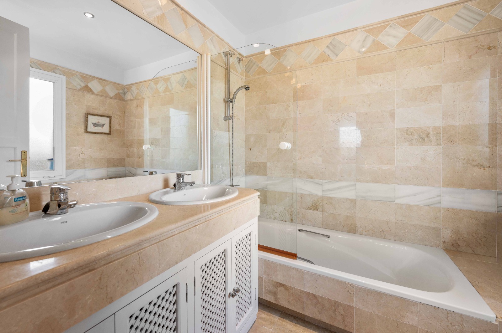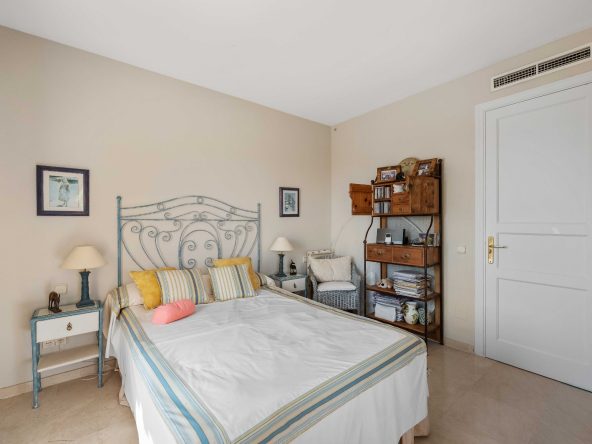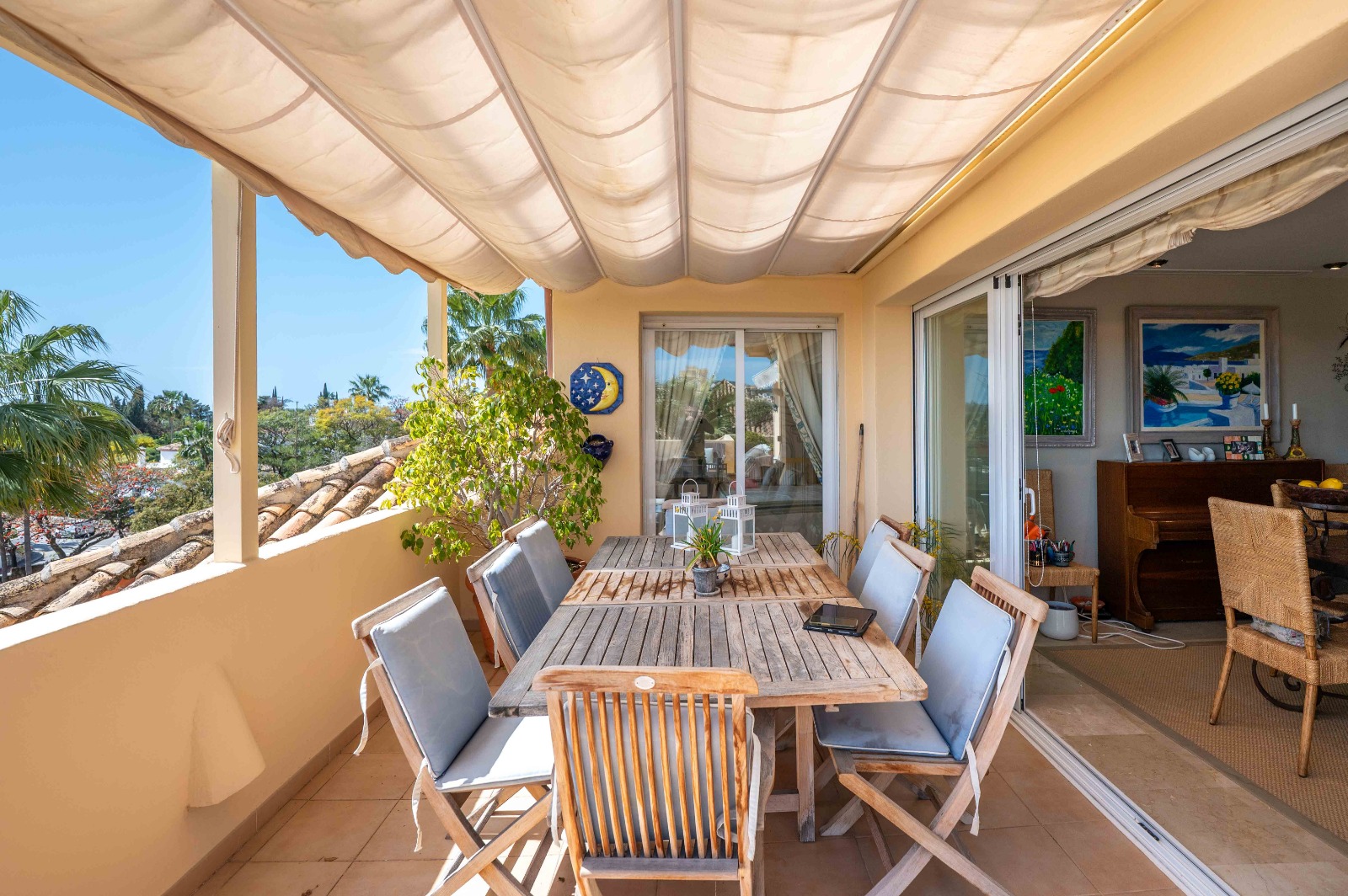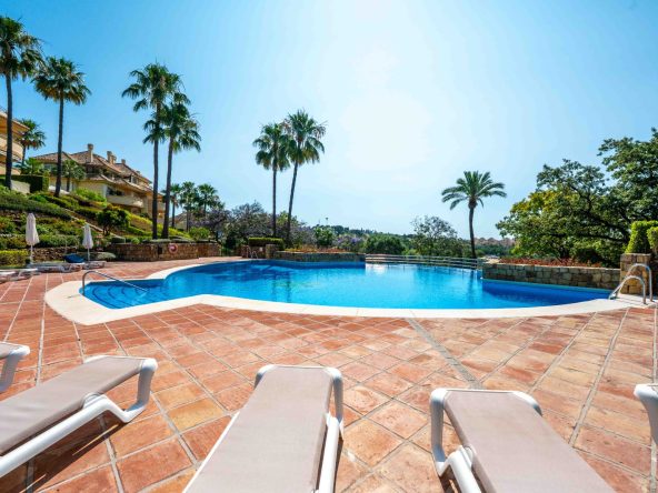 Ático con vistas panorámicas al mar en venta en Elviria Hills, Marbella Impresionante ático con una ubicación única en primera línea, que ofrece vistas panorámicas a los jardines y al mar Mediterráneo, rodeado de palmeras y bosque de pinos. La vivienda destaca por sus amplias dimensiones, abundante luz natural y una experiencia de vida única en un entorno altamente atractivo con gran privacidad. La propiedad cuenta con 147 m² de superficie interior, además de una espaciosa terraza de 57 m² con triple orientación (sur, este y oeste). Esto garantiza sol durante todo el día y crea múltiples zonas exteriores, ideales para relajarse, recibir invitados o simplemente disfrutar del entorno en cualquier momento. La vivienda dispone de suelos de mármol en todas las estancias, climatización (frío/calor), plaza de garaje subterránea y trastero. El salón es amplio y acogedor, con chimenea y grandes ventanales que inundan el espacio de luz natural, además de acceso directo a la terraza. El resultado es una perfecta conexión entre interior y exterior, realzada por las vistas abiertas al Mediterráneo y al paisaje verde. La cocina está completamente equipada y tiene acceso directo a una terraza trasera, ideal para disfrutar tanto por la mañana como por la tarde. En esta planta también se encuentran dos cómodos dormitorios y dos baños, diseñados cuidadosamente para garantizar confort y privacidad. La planta superior está dedicada a la suite principal, con un encantador diseño tipo loft, armarios empotrados y baño en suite. Elviria Hills se encuentra en una de las zonas más demandadas al este de Marbella y ofrece una amplia gama de servicios de alta calidad, incluyendo un campo de golf de 9 hoyos, pistas de tenis, gimnasio, sauna y un reconocido restaurante dentro del complejo. La urbanización es conocida por sus cuidados jardines y su ambiente tranquilo. A 5 minutos en coche se encuentran dos centros comerciales con bares, restaurantes, bancos, peluquerías, supermercados, dentistas, médicos y muchos otros servicios, como una oficina de correos, una floristería y farmacias. Algunas de las mejores escuelas de la zona, como el Colegio Alemán y el English International College, se encuentran a solo 10 minutos. Se puede llegar al centro de Marbella en 10 minutos, a Puerto Banús en 15 minutos y al aeropuerto de Málaga en aproximadamente, 40 minutos. |