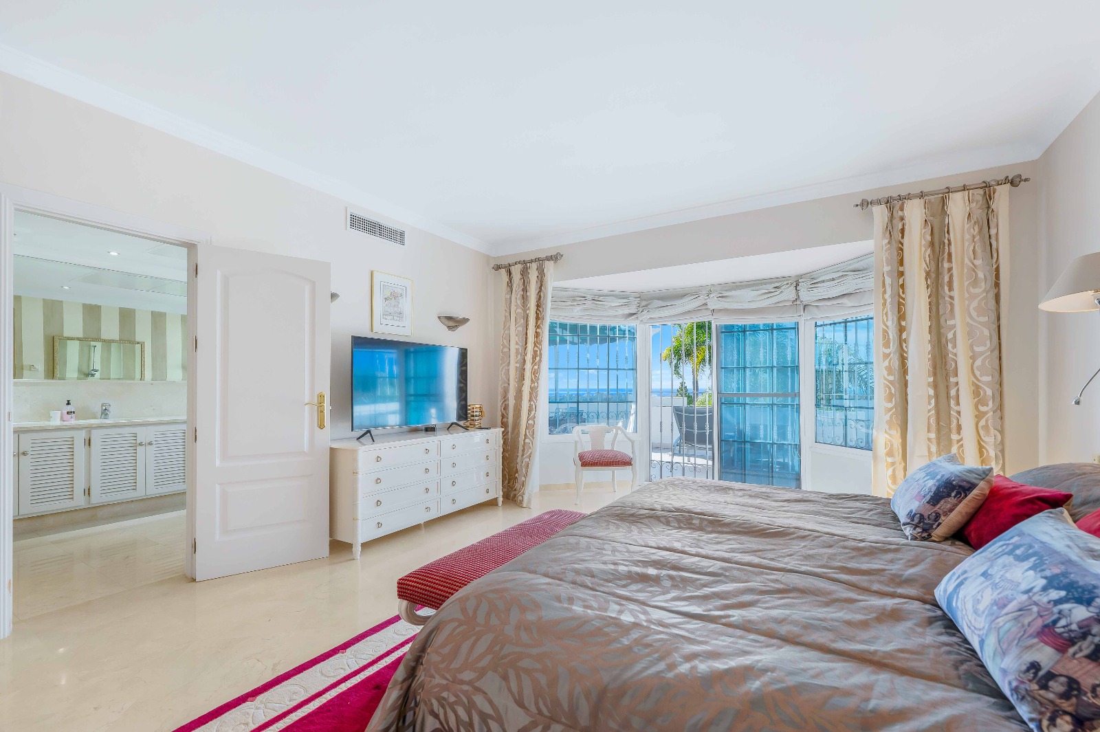 Øvre etasje har tre soverom, inkludert en imponerende hovedsuite med walk-in-garderobe, et stort bad og direkte utgang til en privat terrasse med åpen havutsikt, som gir et fredelig tilfluktssted året rundt. To ytterligere soverom med dobbeltsenger deler bad, noe som gjør dem ideelle for barn eller tenåringer, og begge har utgang til den øvre terrassen.