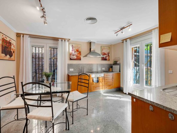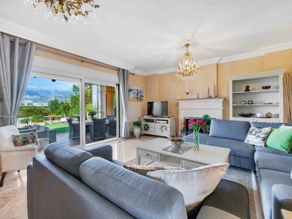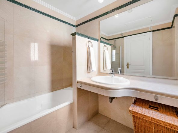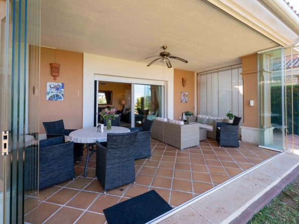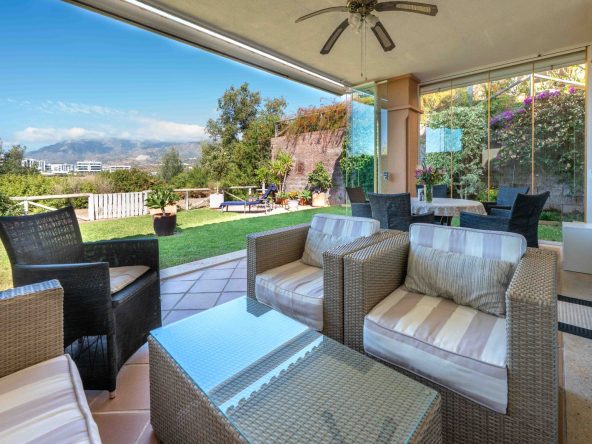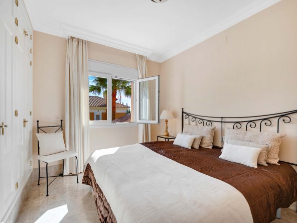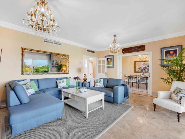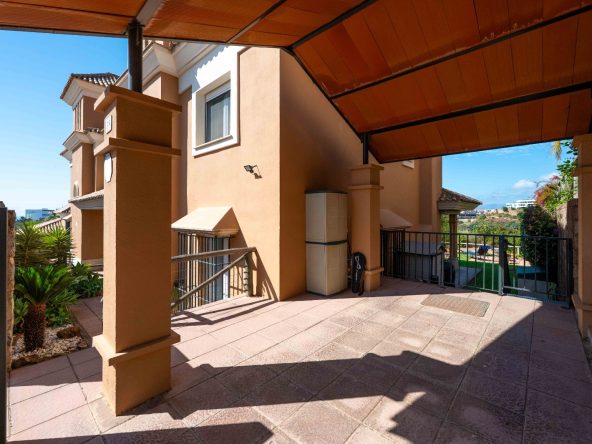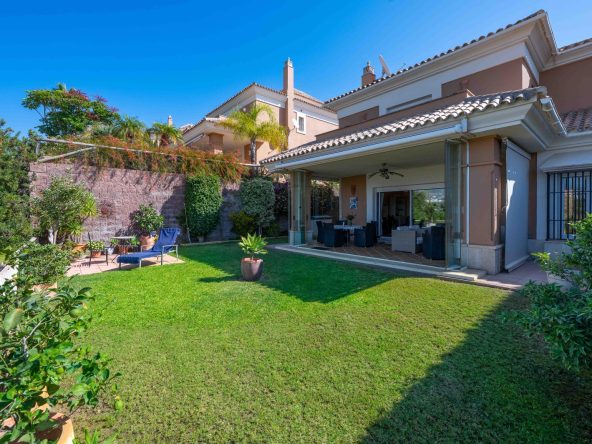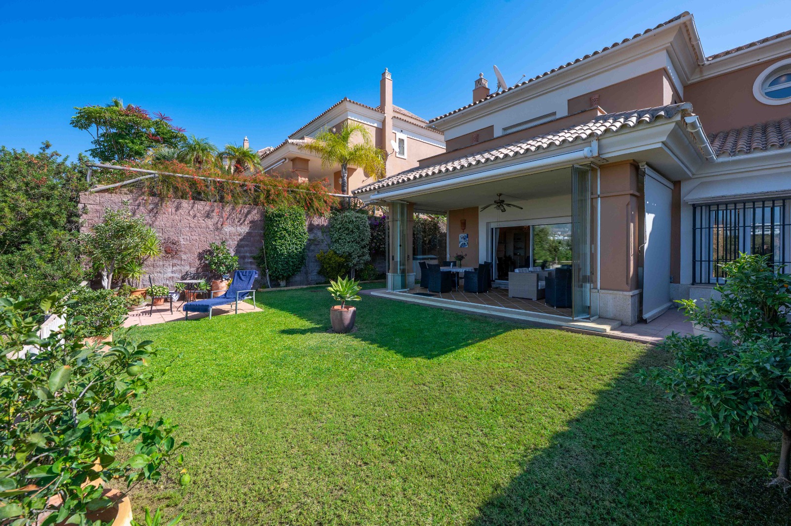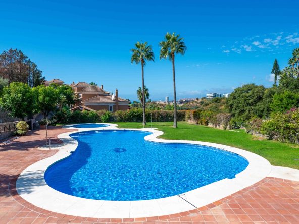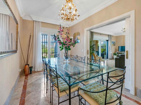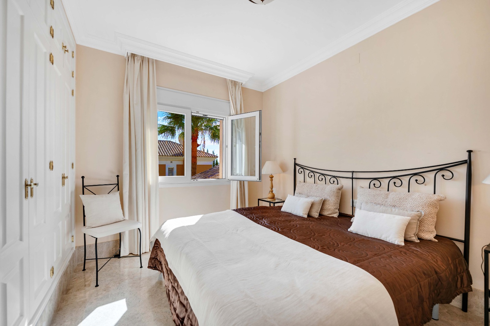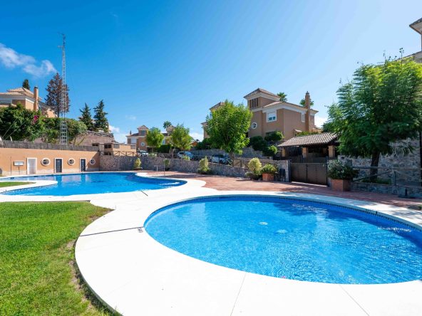 Området er inngjerdet med døgnåpen overvåking og kamerasystemer, og har et felles svømmebasseng. Denne eiendommen ligger rett ved golfbanen, men likevel atskilt fra grønne marker, og unngår risikoen for golfballer på avveie. Det er et rolig boligområde, samtidig som det bare er minutter fra Marbellas pulserende sentrum. Golfentusiaster vil sette pris på å bo langs den berømte 18-hullsbanen designet av Enrique Canales Busquets.