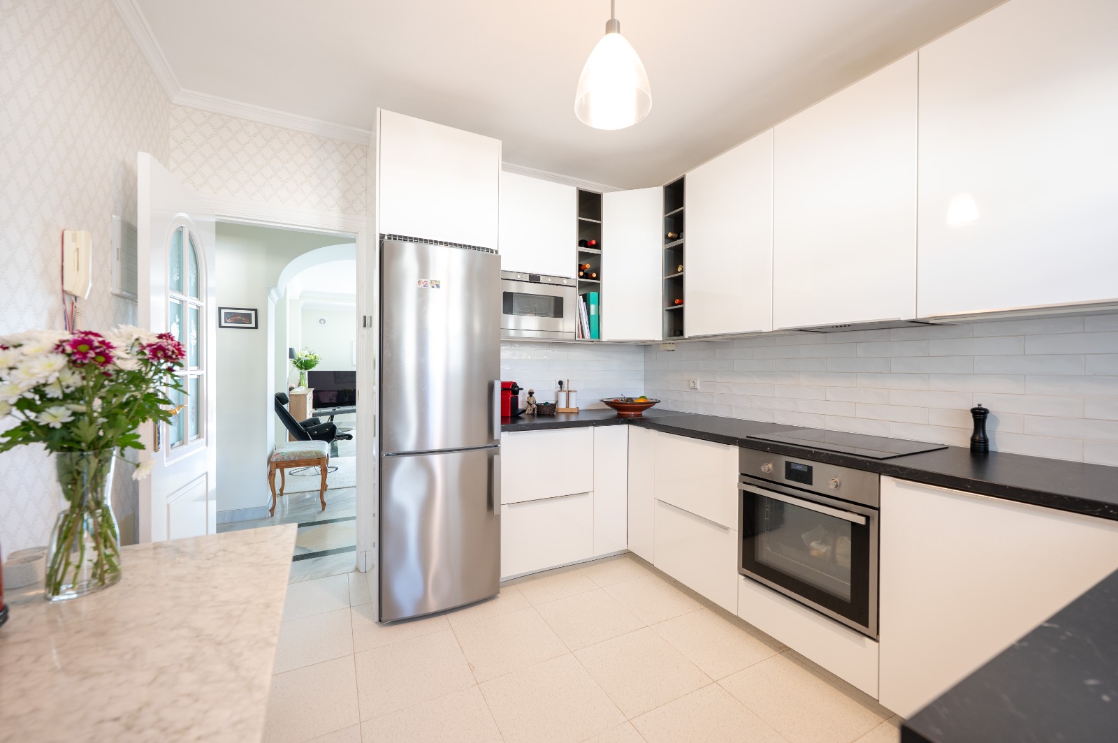 Det fullstendig renoverte kjøkkenet er fullt utstyrt og har også et stort og praktisk vaskerom. Leiligheten inkluderer også en underjordisk parkeringsplass.