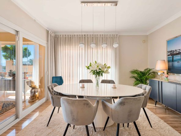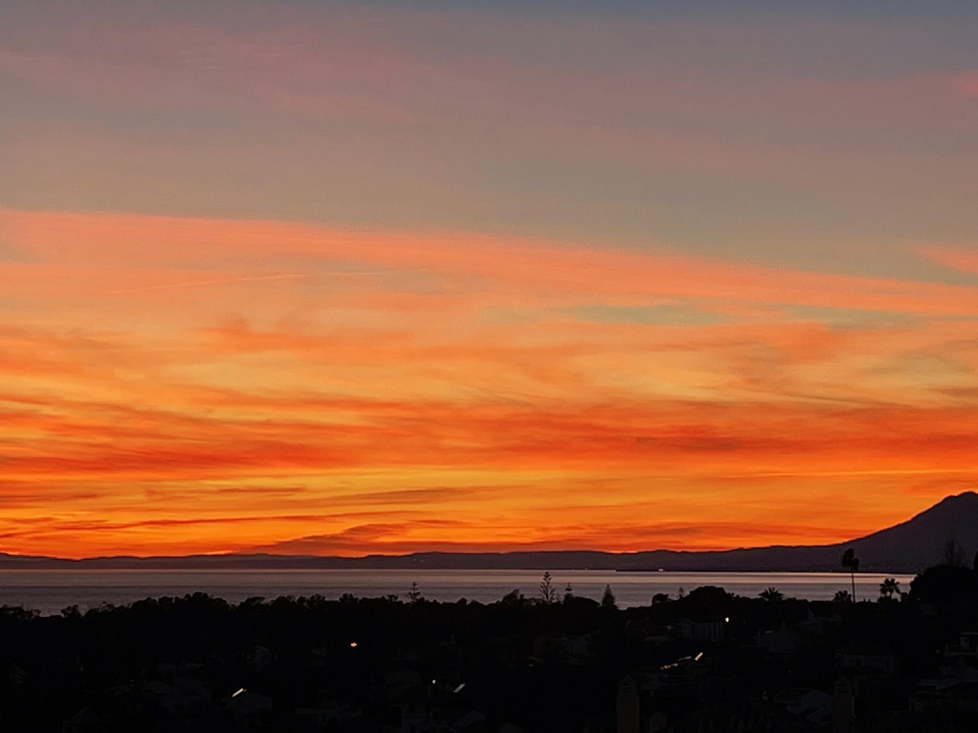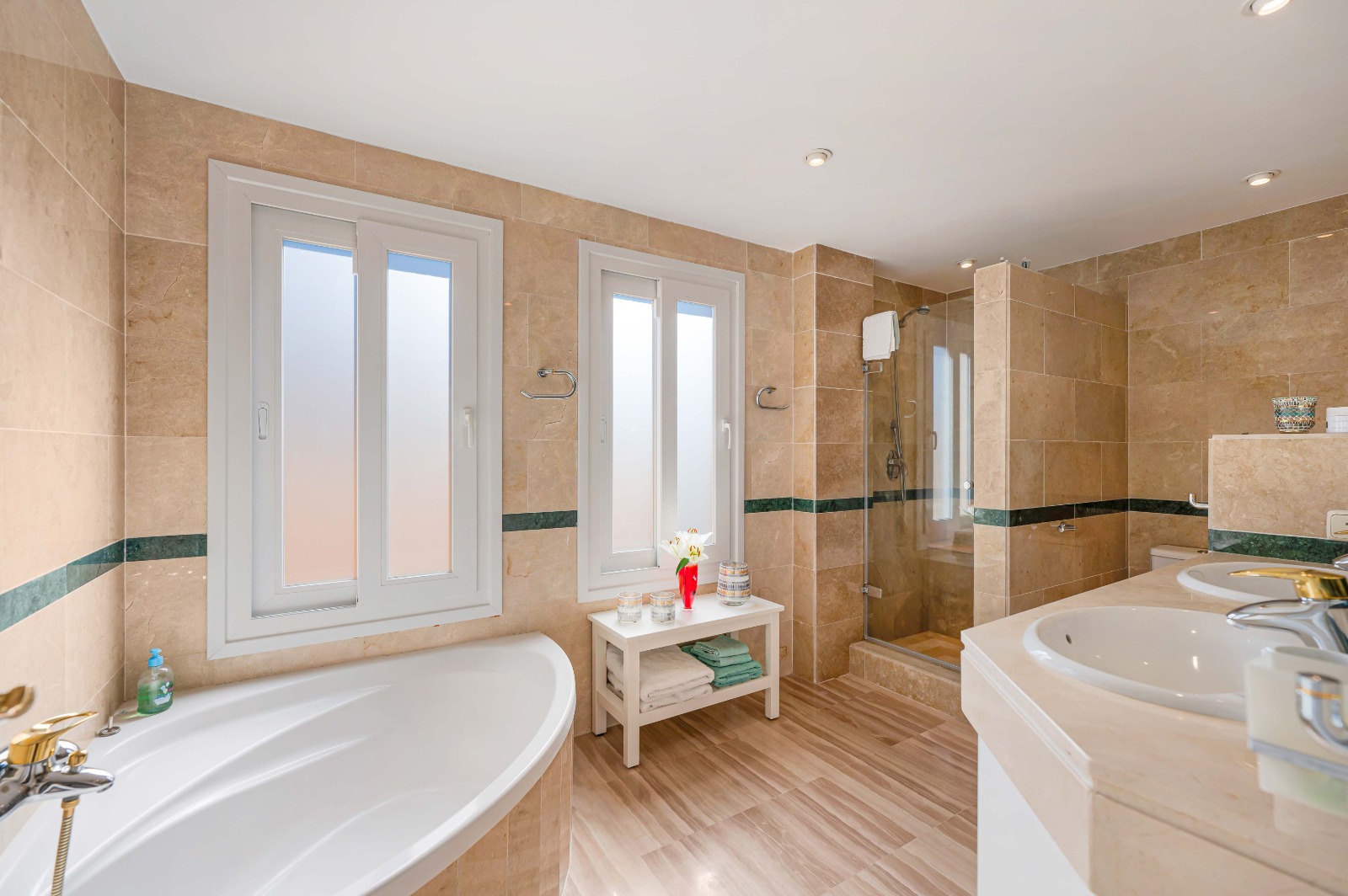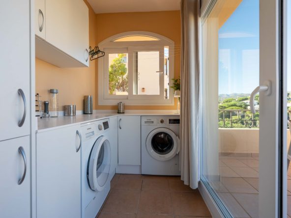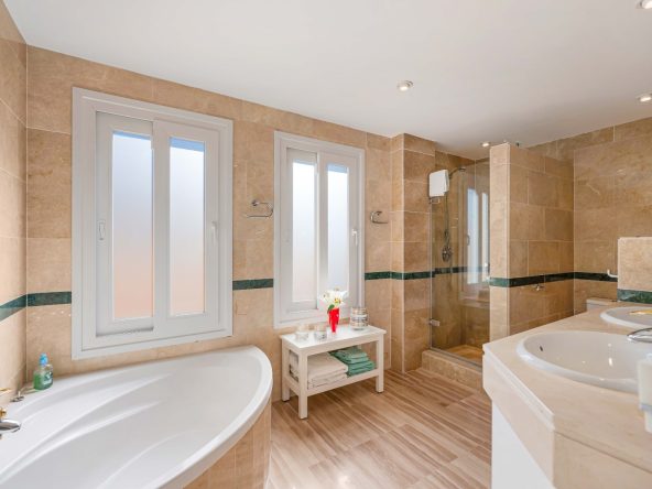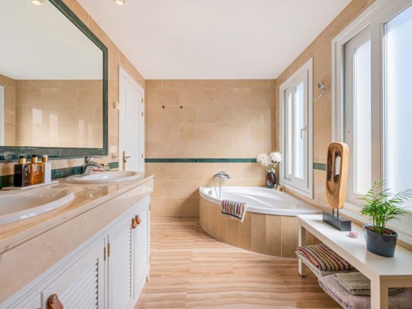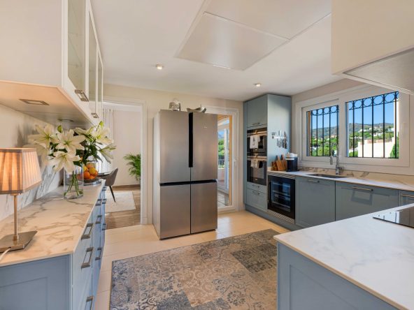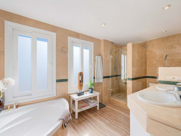 Den sjenerøse terrassen (240 m²) tilbyr både overbygde og åpne områder, flere sittegrupper og et spisebord, perfekt for å nyte den fantastiske utsikten over Middelhavet, den afrikanske kystlinjen, fjellene og de frodige omgivelsene. En del av terrassen utenfor spisestuen, er innglasset for vinterbruk.