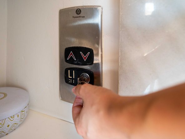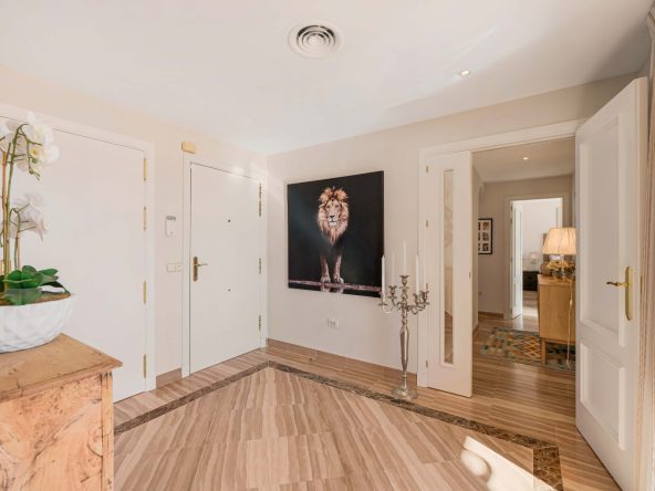 Ovenpå er det to ekstra soverom, begge med eget bad, og et stor takterrasse, ideell for soling. En privat heis med nøkkeltilgang bringer deg direkte fra garasjen til leiligheten. Ny inngangsdør er installert for å forbedre privatlivet og gi entreen et mer elegant utseende.